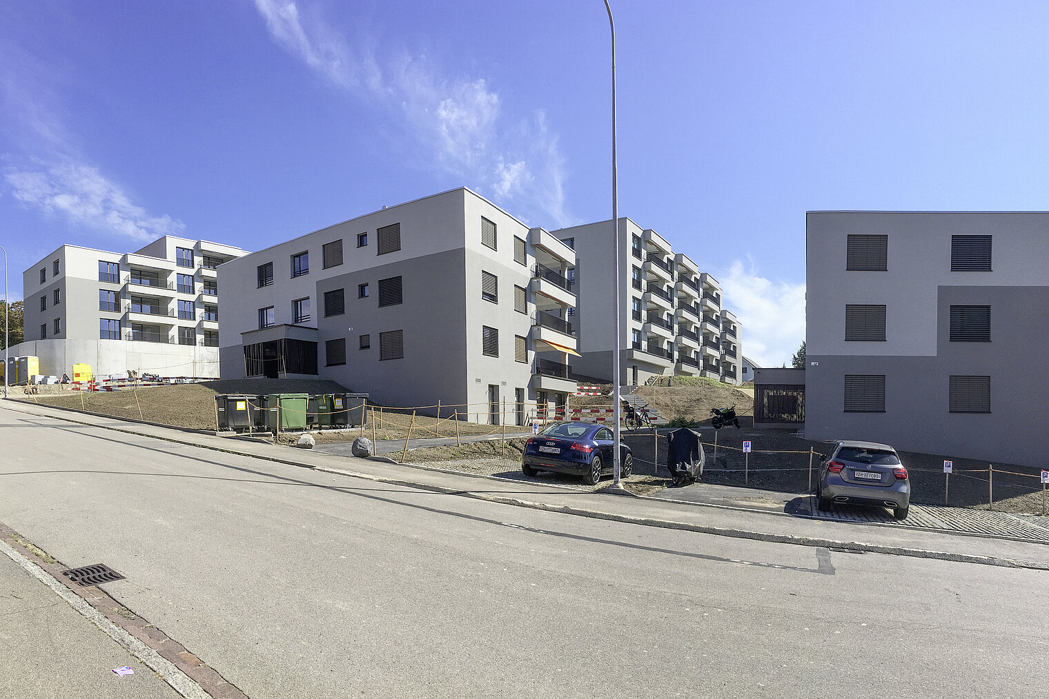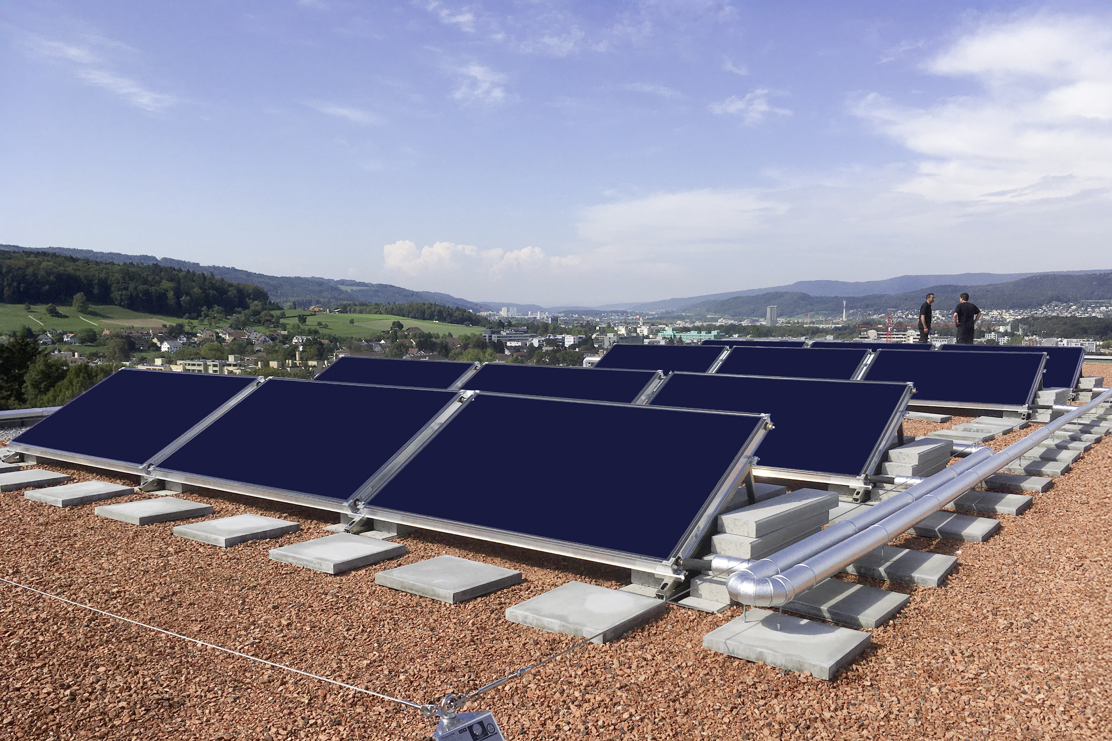 Mind a hat új épületet Weishaupt talajhő/víz hőszivattyúkkal szerelték fel. A három kisebb lakóépület mindegyike egy-egy WWP S 18 ID hőszivattyút kapott, míg a három nagyobb ingatlan nagyobb teljesítményű, WWP S 50 ID-ket. A lapostetőkre Weishaupt WTS-F2 napkollektorokat is telepítettek a használati melegvíz és a fűtés támogatására. A rendszert a Weishaupt melegvíz tartályok és energiatárolók teszik teljessé.