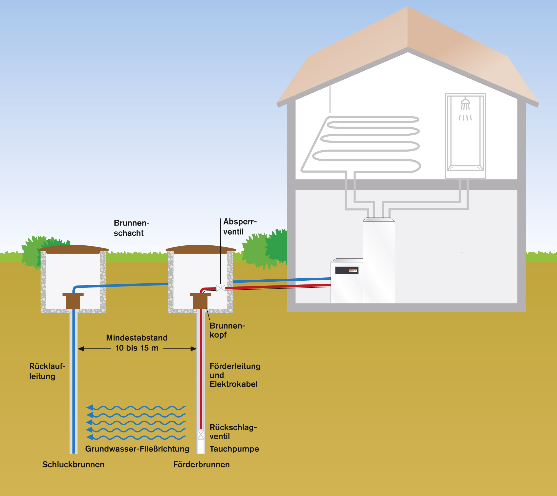 Ennek előfeltétele professzionálisan elkészített kút, mely a talajvíz, mint energiaforrás tartós használatát biztosítja. Ezért Weishaupt leányvállalat a BauGrund Süd cég. Európa vezető felszínközeli geotermális cége a termikus kutak területén is rendelkezik olyan tudással és képességekkel, hogy átlátható és biztos ajánlatot állítson össze.
