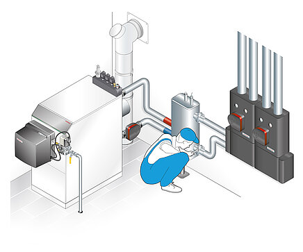 A biztonságtechnika érdekében (EN 12828 szerint) egy (tartozékként rendelhető) szerelvénysor áll rendelkezésre a következő felszereltségben: